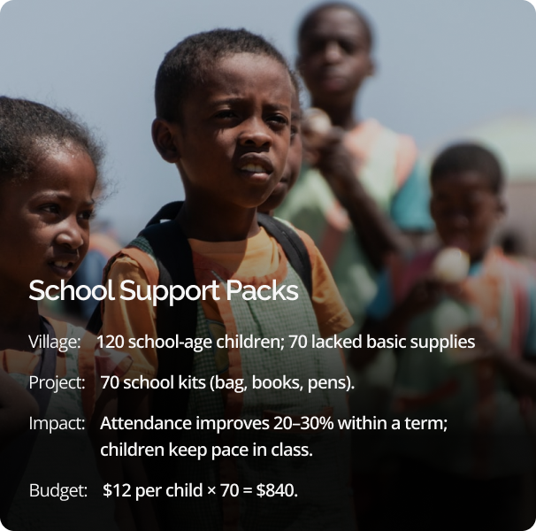 A Borehole, a school kit, a clinic day can shift a whole village.